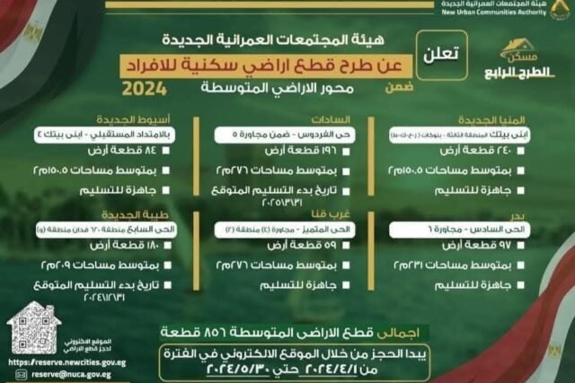 طرح قطع الاراضي السكنيه الدائمة بالمدن الجديدة خلال الأيام القليلة الق ...
